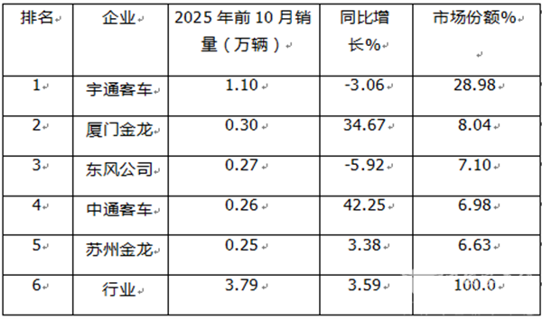 那么2025年10月及前10月主流企业大型、中型客车销量排行如何?