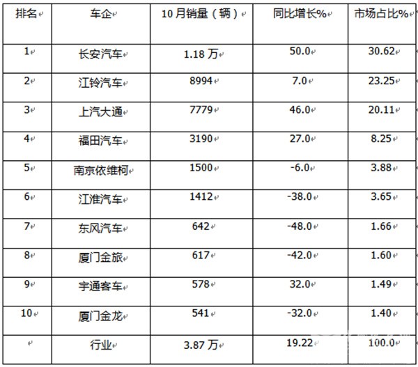 10月轻客:销3.87万辆,同比增环比降长,长安领涨