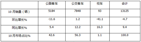 一是10月叠加中秋、国庆“双节”长假,旅游旺季来临,对旅游公路客车需求增加;加之去年同期销量基数不高,给今年10月同比增长奠定了基础;