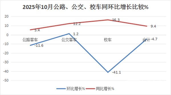 上图表可见,在2025年10月5米以上公路、公交、校车三大细分市场中: