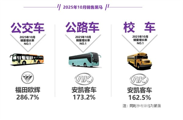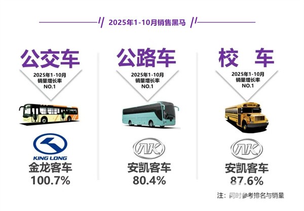 综上所述,在2025年10月及1-10月的公路、公交和校车三大客车细分市场中,公交客车均领跑;均成为2025年10月及前10月客车市场最大的赢家。