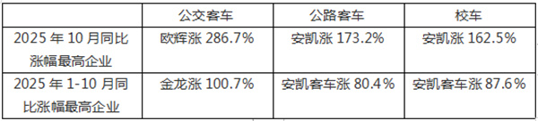 2025年1-10月同比涨幅最高企业金龙涨100.7%安凯客车涨80.4%安凯客车涨87.6%