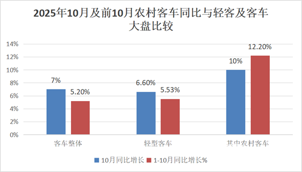 ---2025年前10月农村客车终端销量累计同比增长12.2%,跑赢2025年前10月客车大盘(5.2%)及轻客整体市场增速(5.53%),并领涨各客车细分市场。