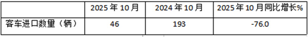 截图2,2025年10月及前10月我国客车进口数量(数据来源:中国汽车流通协会)