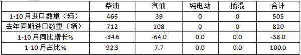 前10月我国客车进口:同比下降近4成 轻客占主体 柴油居垄断地位