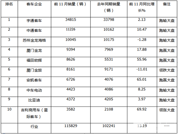 11月大中客车:同环比双增销量创新高 金龙跃升第二 中车守住第三