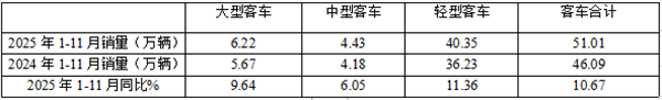 现将对2025年11月大、中、轻客车销量特点做扼要分析。