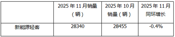表2,2025年11月新能源轻客环比微降0.4%(数据来源:终端上牌信息)