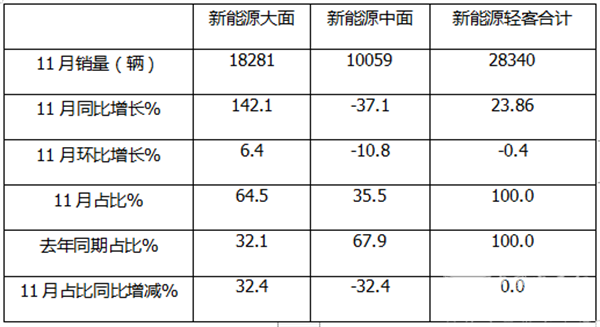 总之,新能源大面成为推动今年11月国内新能源轻客行业唯一增长的动力。