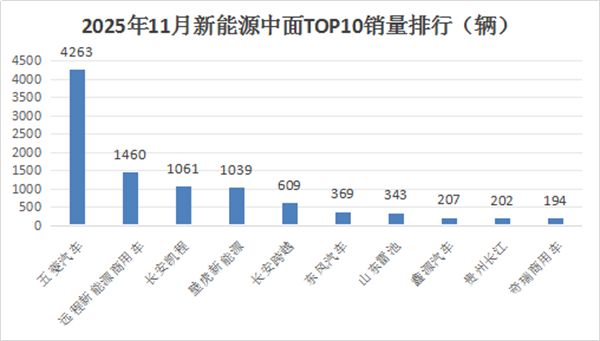 上图表显示,在2025年11月新能源轻客销量中: