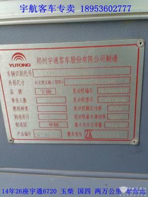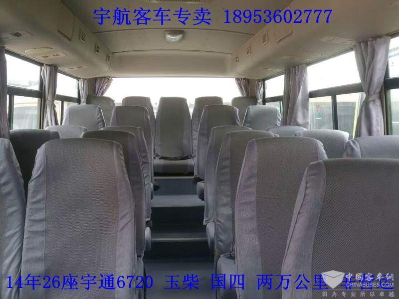 14年26座宇通6720,国四排放,玉柴4缸130马力,行驶两万公里,非营运