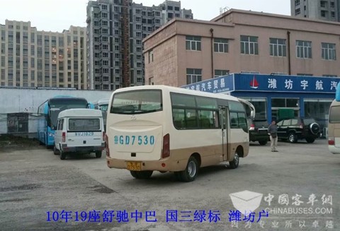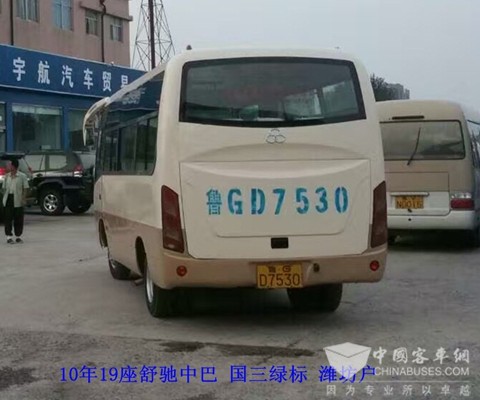 10年19座舒驰中巴,国三绿标。另我公司还有9-59座各种品牌各种价位大巴车,欢迎来电咨询。