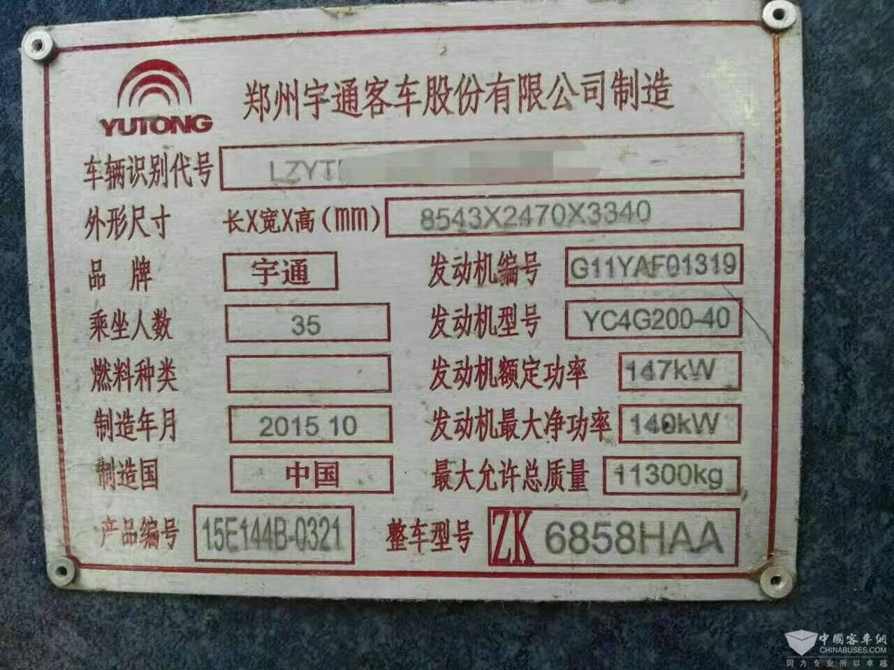 2015年10月35座6858宇通