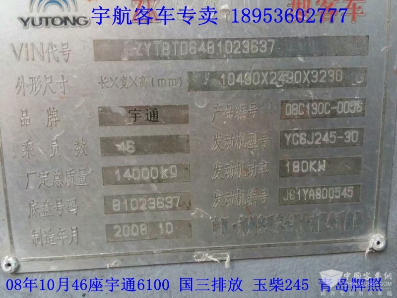 低价出售08年10月46座宇通6100
