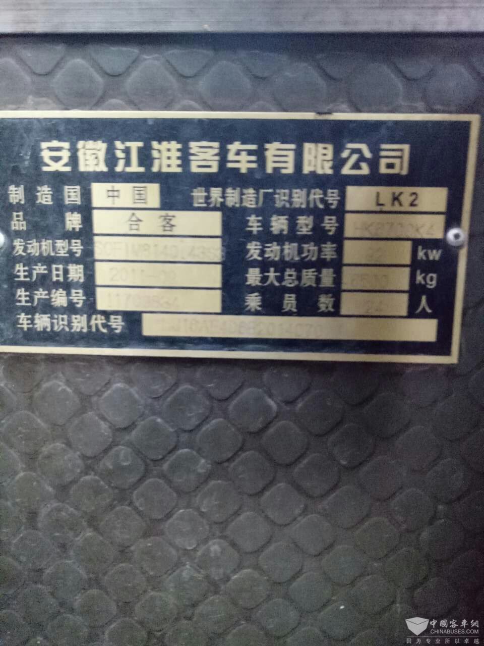 | 客车品牌 | 江淮客车 | 上牌时间 | 2011-05-13 |