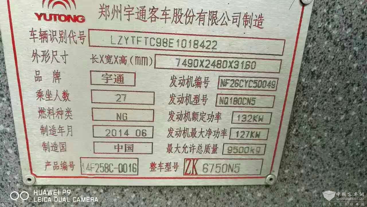 | 客车品牌 | 宇通客车 | 上牌时间 | 2014-07-19 |