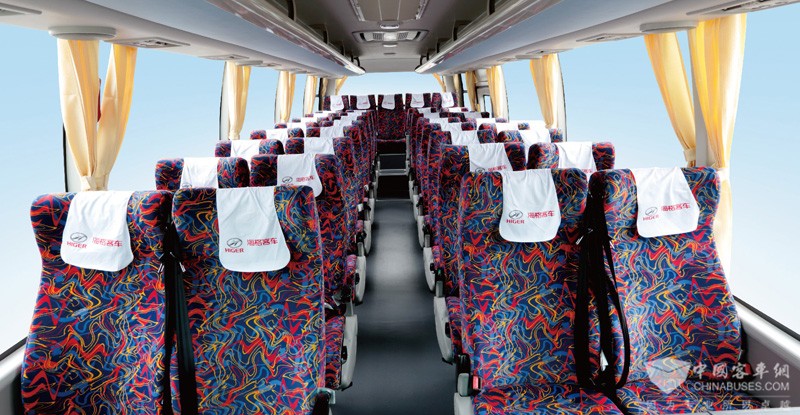 除霜器 前风挡除霜系统 乘客门 前开气动外摆门(带遥控门锁) 后视镜 豪华电动后视镜(带除霜) 侧窗形式 尾窗单层内置推拉其余单层密封 天窗 安全天窗 行李仓 翻转式铝合金行李仓门 内饰及内照明系统 豪华成型顶、豪华内饰 灯具 车内顶夜光灯,内顶灯、踏步灯 地板革 蓝色彩点地板革 仪表台 豪华仪表台 司机椅 高靠背司机椅(可调) 乘客座椅 全车BA01二代乘客座椅(前后可调无侧移),全车配安全带 布座椅 护栏 软化护栏(司机椅后护栏带导游靠背) 遮阳帘 前挡手动双幅遮阳帘 窗帘 浅黄色布窗帘(配窗帘挂钩)