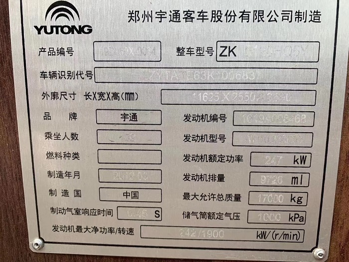 客车品牌 宇通客车 上牌时间 2019-03-01