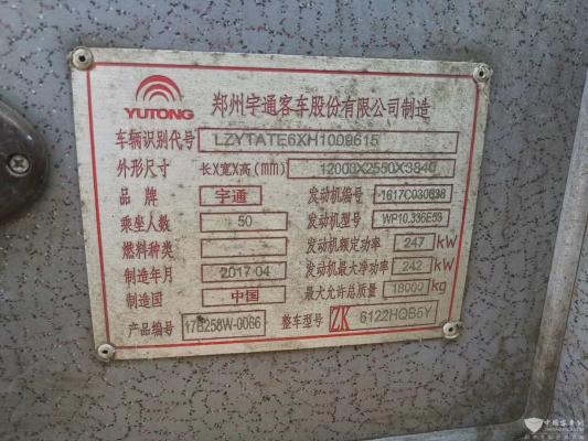客车品牌 宇通客车 上牌时间 2017-06-03