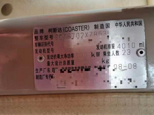 | 客车品牌 | 宇通客车 | 上牌时间 | 2008-09-30 |
