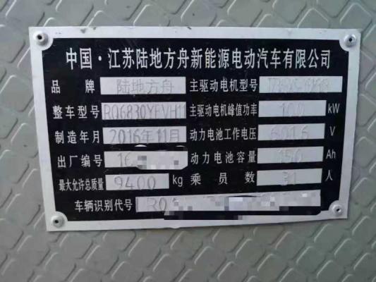 | 客车品牌 | 陆地方舟 | 上牌时间 | 2019-12-26 |