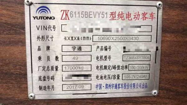 | 客车品牌 | 宇通客车 | 上牌时间 | 2017-10-26 |