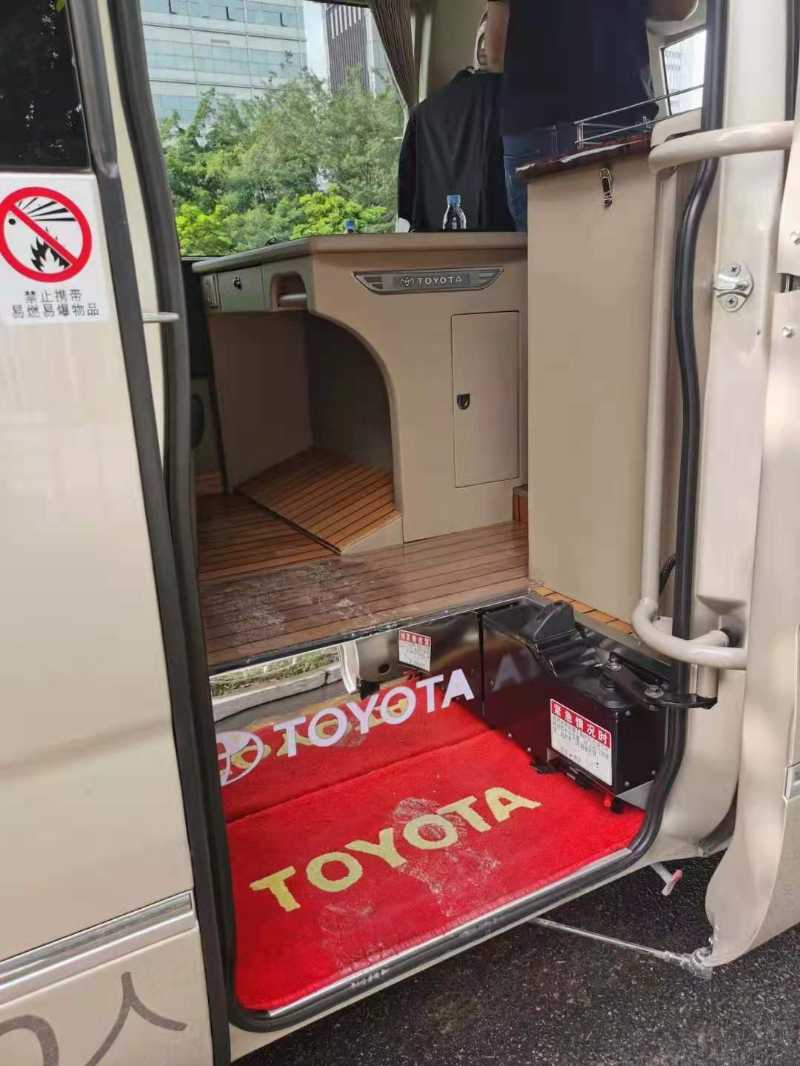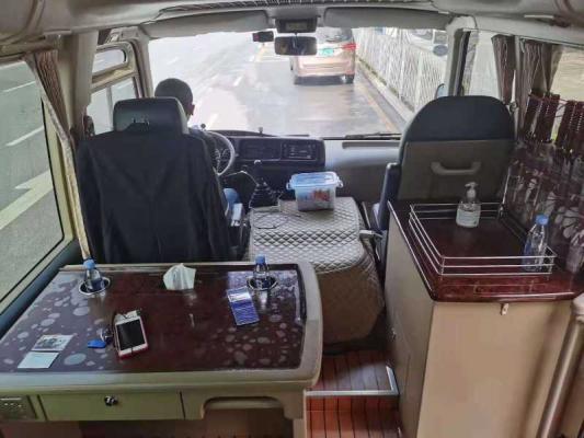 2018年上牌的丰田考斯特柯斯达中巴,20座,新车六十多万的纯正豪华版,原厂封边玻璃外摆门,汽油6GR4.0发动机,冰箱,办公桌,秘书台,檀木地板,可调方向盘,可调节后视镜,带换气扇,真皮座椅,高配置更超强隔音隔热,非营运性质.