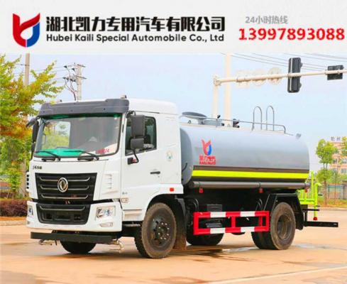 我公司产品标配前冲、后洒、侧喷、后置式工作平台,平台上配置高压水炮(可360°旋转,既可以调成柱状,最大射程35米,也可以调成雾状,最大射程15米,更可以调成直冲状、大雨、中雨、小雨、毛毛雨),配备优质大功率专用洒水泵,取力器,杂物过滤网,国标通用65型消防接口(可通过消防栓加水),一套自流球阀系统(可自吸自排,可从河里或池塘抽水到罐体,最大吸程7米),两根引水钢丝胶管。水泵、取力器、球阀、滤网均为国家标准产品,主管道加粗,法兰垫、法兰盘加厚,万向前冲,大通径球阀。整体具备性能优良、安全可靠、效率高、流量大、维修方便等特点。