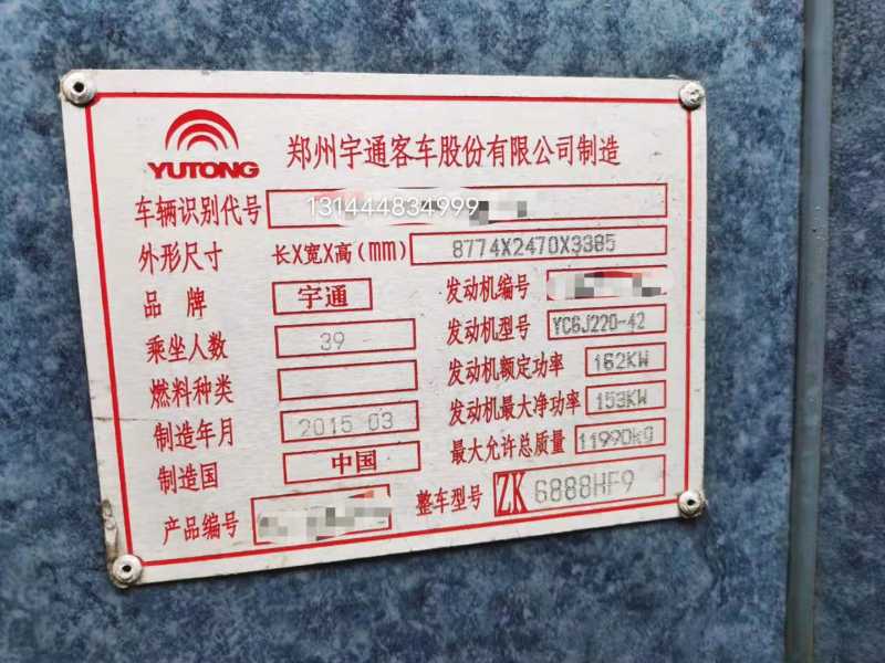 | 客车品牌 | 宇通客车 | 上牌时间 | 2015-04-24 |