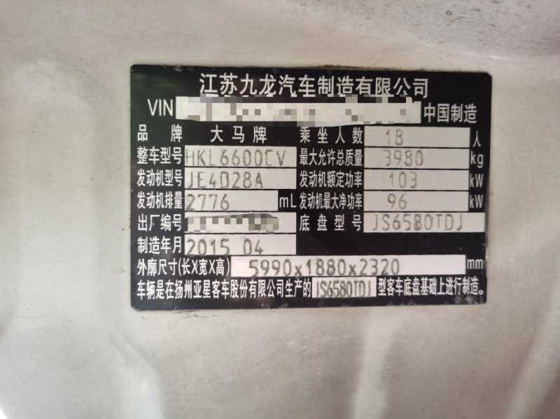| 客车品牌 | 九龙客车 | 上牌时间 | 2015-05-29 |