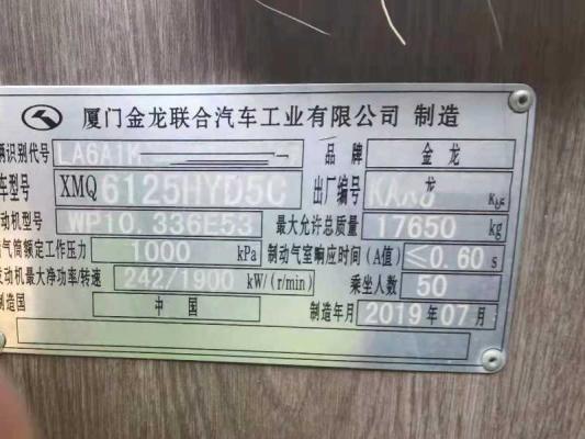 | 客车品牌 | 金龙客车 | 上牌时间 | 2019-08-15 |