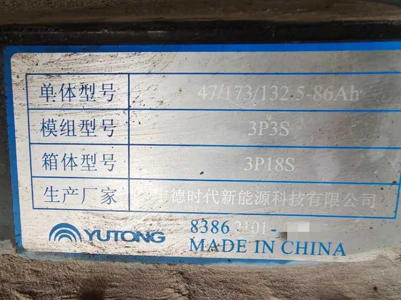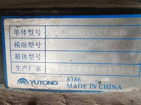 2015年47座非营运宁德时代有电池加热宇通纯电客车