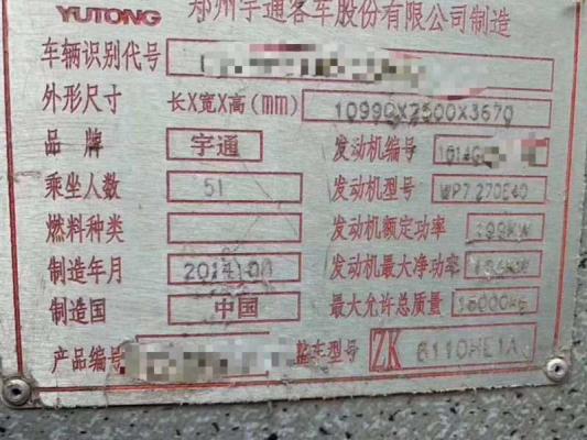 | 客车品牌 | 宇通客车 | 上牌时间 | 2014-09-30 |