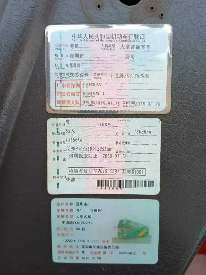 2014年11月 同款两台55座有中门营运档案前碟后鼓车况好宇通6126客车