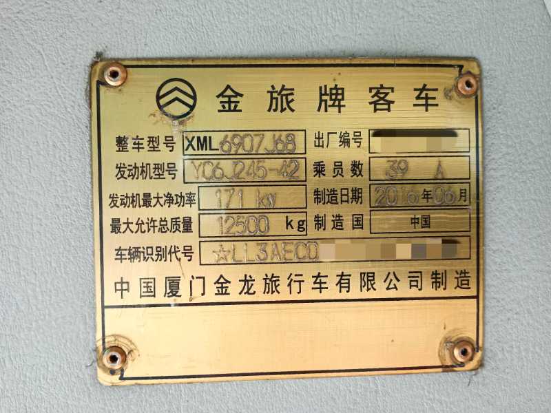 2016年6月出厂金旅6902气囊车,39座,玉柴245发动机,安全门,旅游客运,可提供广东省营运转籍通知单.