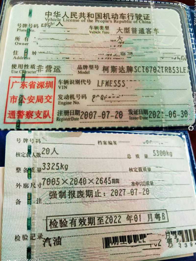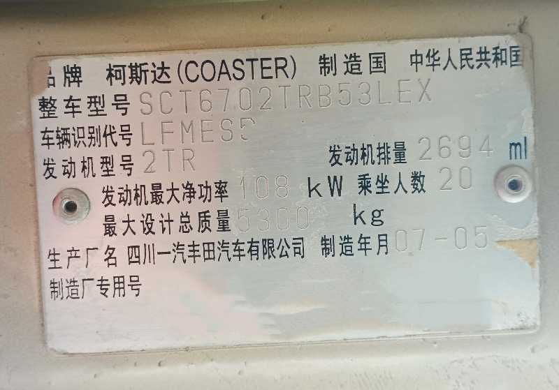 | 客车品牌 | 柯斯达客车 | 上牌时间 | 2007-07-23 |