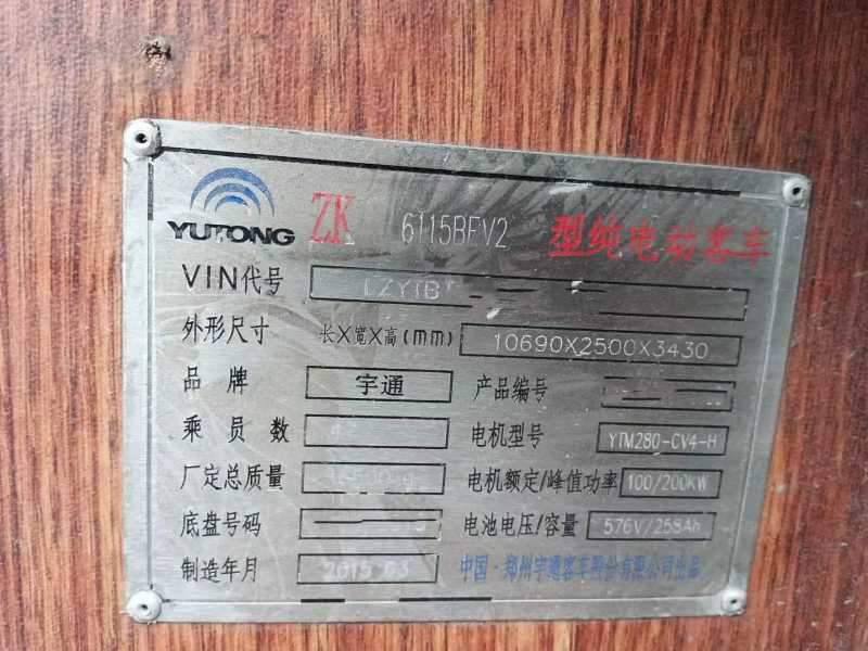 | 客车品牌 | 宇通客车 | 上牌时间 | 2015-05-20 |