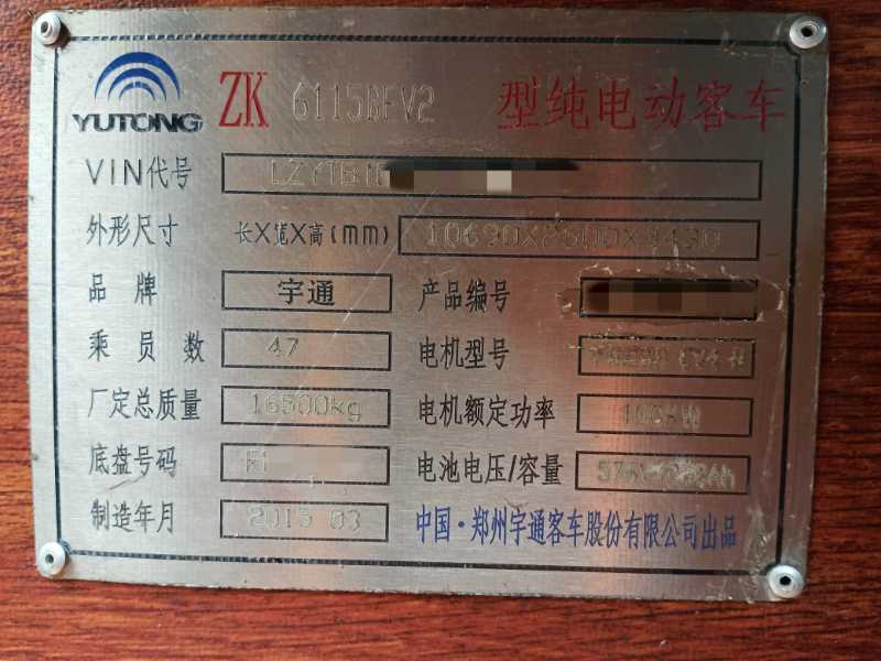 | 客车品牌 | 宇通客车 | 上牌时间 | 2015-04-28 |