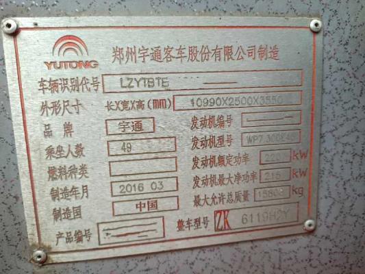| 客车品牌 | 宇通客车 | 上牌时间 | 2016-04-19 |