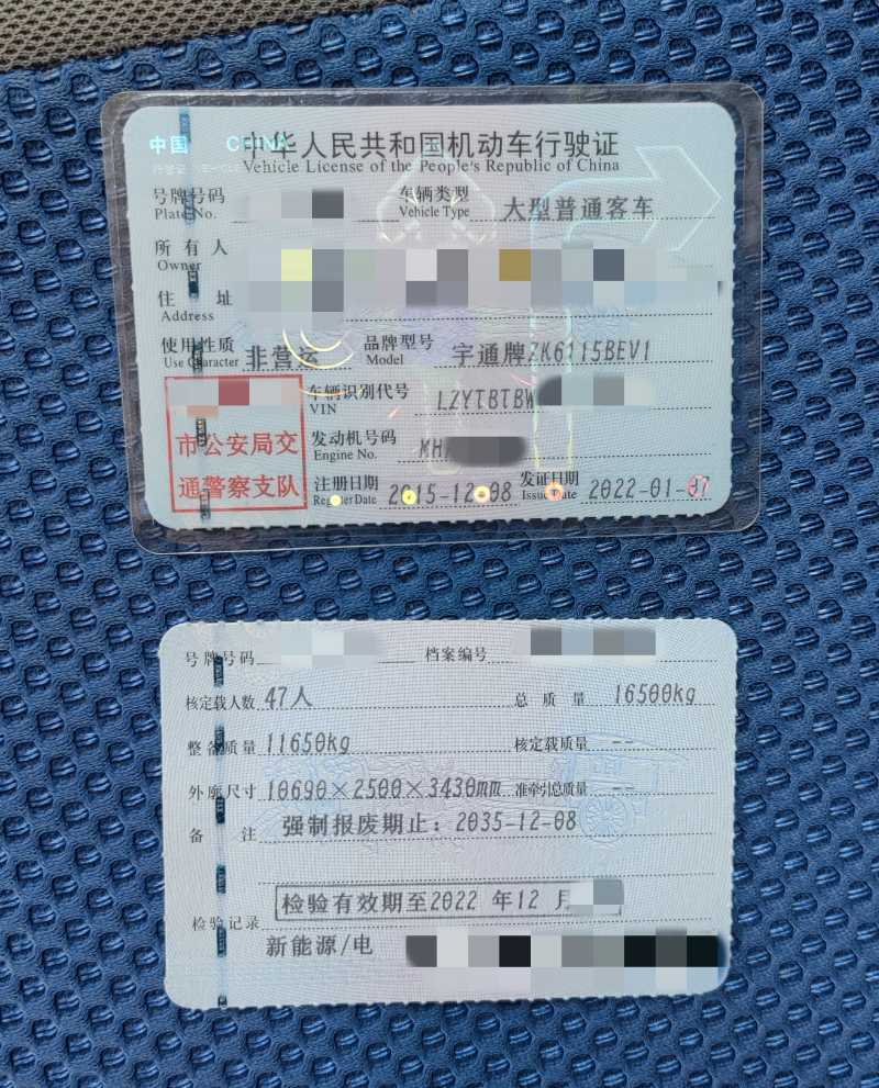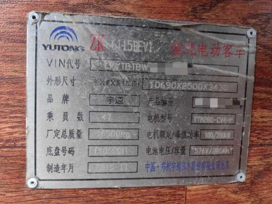 | 客车品牌 | 宇通客车 | 上牌时间 | 2015-12-31 |