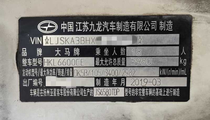 | 客车品牌 | 九龙客车 | 上牌时间 | 2018-08-17 |