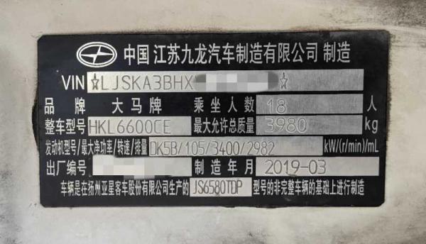 新到一台2018年8月上牌的九龙18座,车况好,价不高,要的速度,定金留车