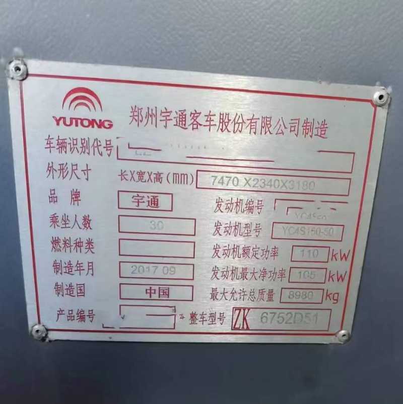| 客车品牌 | 宇通客车 | 上牌时间 | 2017-10-12 |