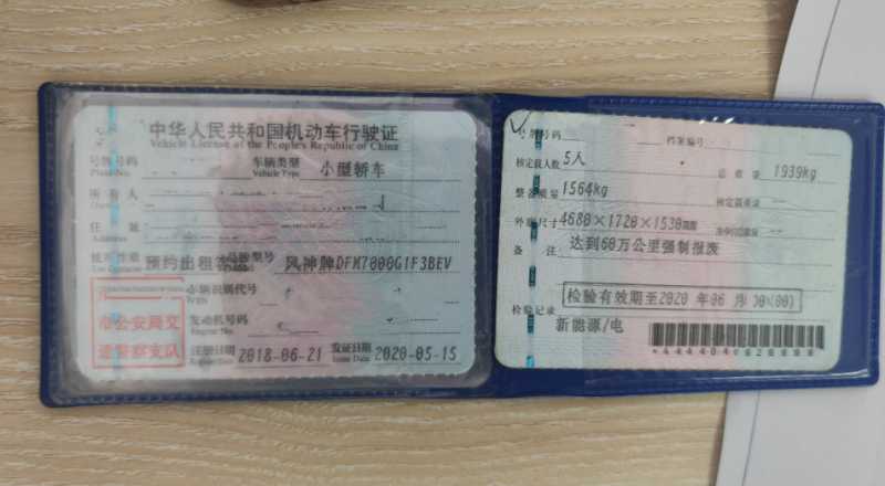 出一批风神牌新能源纯电动小型轿车,2018年6月上牌,预约出租客车性质,宁德时代电池,60万公里报废