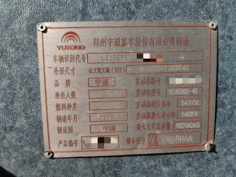 | 客车品牌 | 宇通客车 | 上牌时间 | 2014-04-22 |