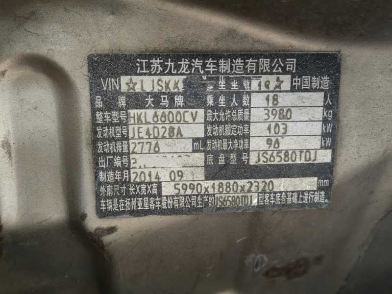 | 客车品牌 | 九龙客车 | 上牌时间 | 2014-11-20 |