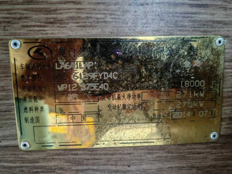 | 客车品牌 | 金龙客车 | 上牌时间 | 2014-07-25 |