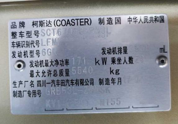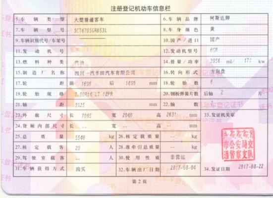 | 客车品牌 | 柯斯达客车 | 上牌时间 | 2017-08-18 |