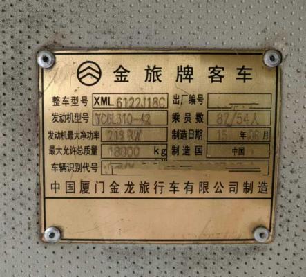 | 客车品牌 | 金旅客车 | 上牌时间 | 2015-09-17 |