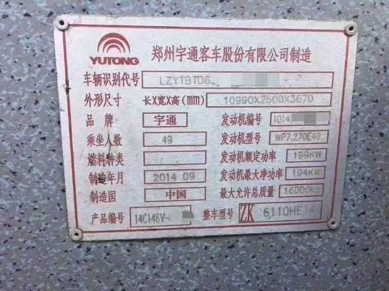 | 客车品牌 | 宇通客车 | 上牌时间 | 2014-10-16 |